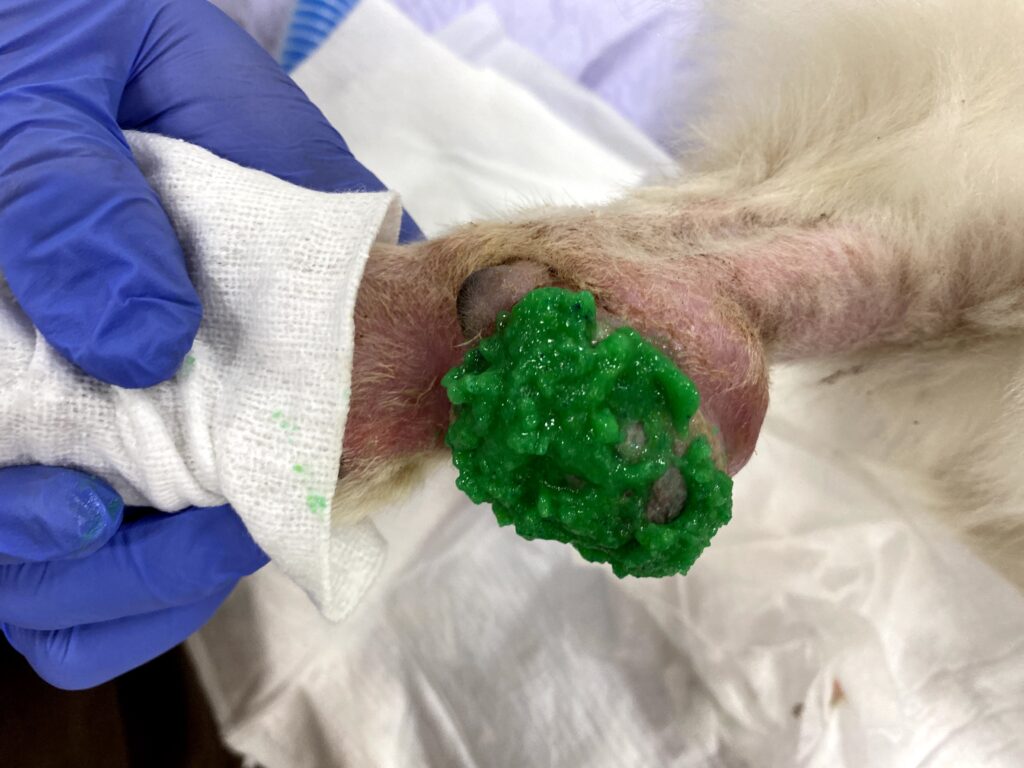 ホーム > 腫瘍まとめ > ケア > 犬と猫の「自壊腫瘍」による出血と悪臭にMohsペースト(モーズ軟膏)